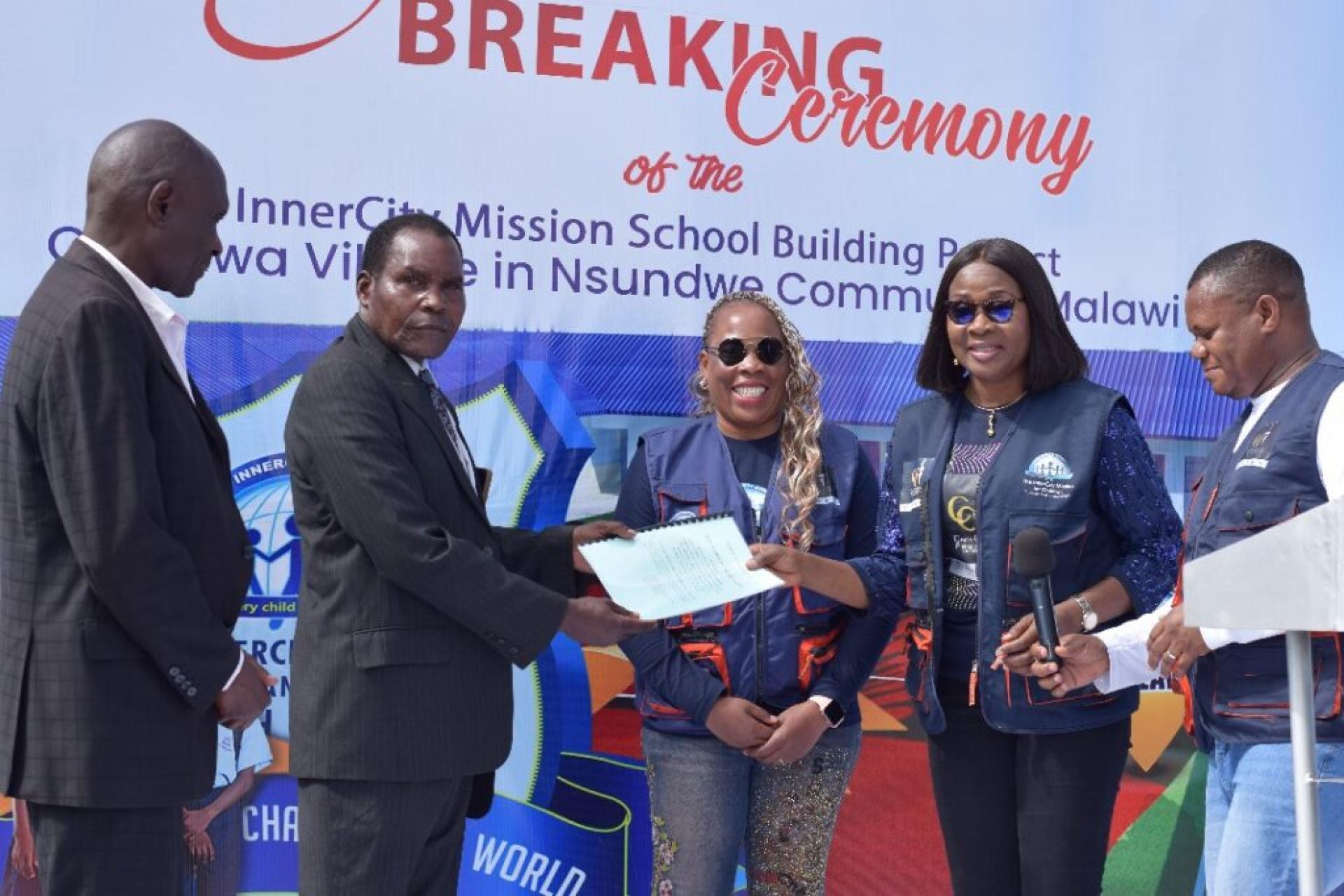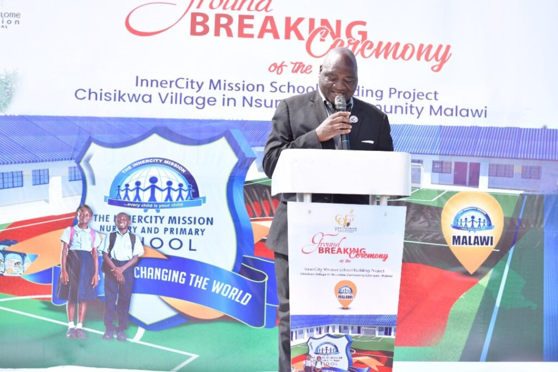 “I commend the InnerCity Mission; you have beautifully demonstrated the spirit of investing in Malawi, and into a community that doesn’t have an adequate number of nursery and primary schools to cater to orphaned and vulnerable children. The construction of this state of the art nursery and primary school is complimenting my Ministry’s effort in providing a conducive learning environment for children in Nsudwe area as well as the entire nation. As you are aware, children in rural areas walk long distances to schools because of the shortage of primary schools. Although my Ministry has approximately 6000 primary schools, they are still failing to provide adequate and equitable access to children. This has resulted in schools with large enrollment and overcrowded classrooms, therefore the school will significantly improve access to education in this area…. Ladies and gentlemen, on behalf of the government, it is my singular honour to declare that the InnerCity Mission Building Project has been officially sanctioned to commence”. In response, the Director of the InnerCity Mission- Pastor Omoh Alabi thanked the Government of Malawi for their support and highlighted the profound understanding of the educational challenges faced by children, which led to the decision to build the 100% free school.